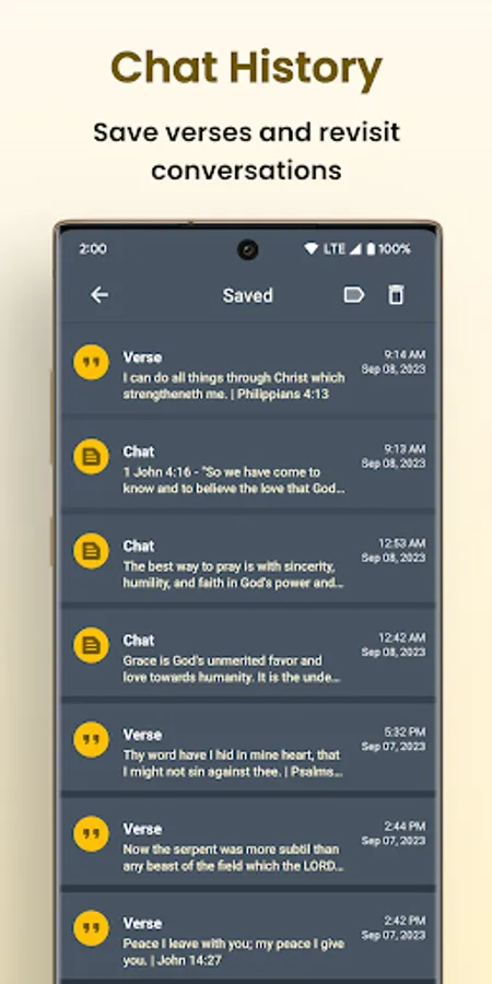🗂 Organize Saved Items: Categorize and manage your saved verses and chat responses for easy reference. Stay organized as you explore the depths of scripture.