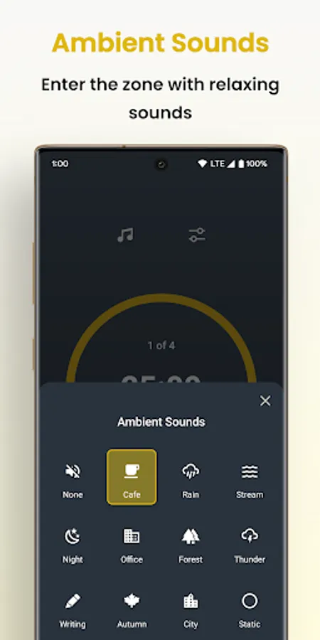 - Listen to ambient sounds to help you get in the zone