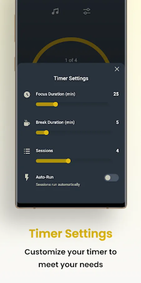 - Customize your work sessions and breaks to fit your needs