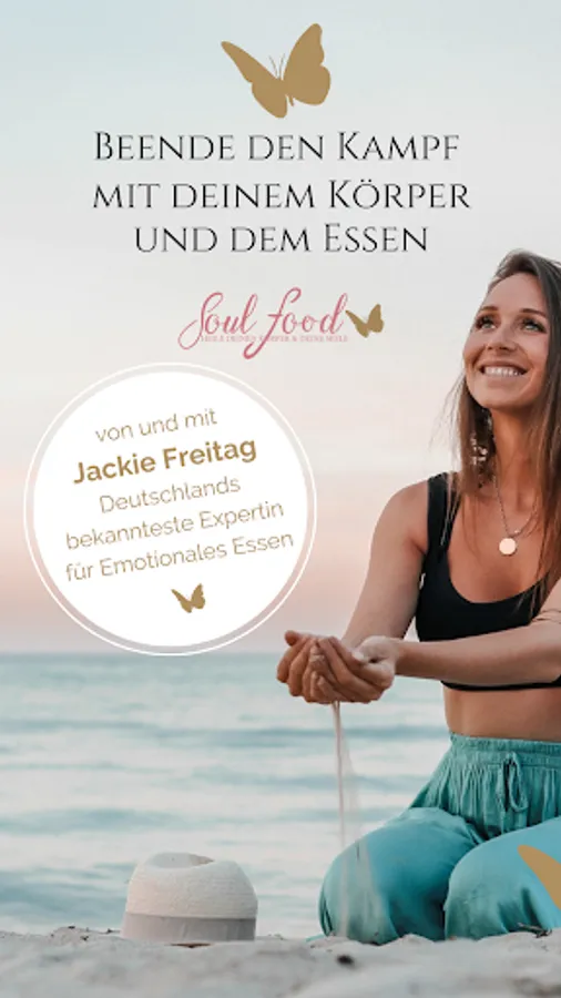 Soulfood describes Jackie Freitag's (Germany's most famous expert for emotional and restrictive eating) healing path at that time. As an ex-victim, with her experience, her knowledge and together with her team, she has already been able to help several thousand women to end their suffering and create a completely new life for themselves.