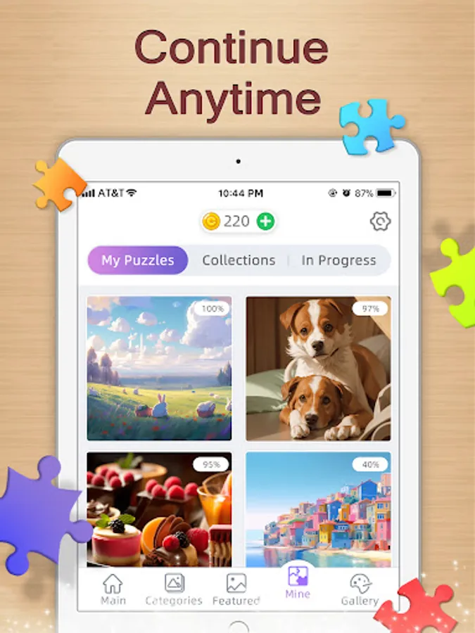 • Auto Save: The system will automatically save all the progress of the puzzles you have played and you can come back to play at any time