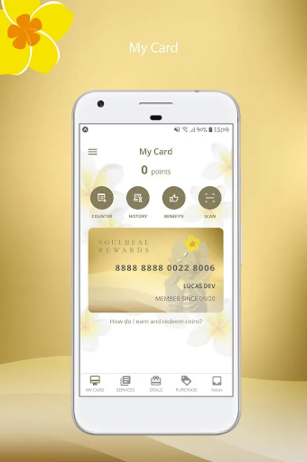 Soulheal Rewards app is the reward program for Soulheal Spa & Wellness for all its valued member. In this app, members can purchase spa services and packages offered at irresistible rate. With every purchase, member will earn rewards points and the points can instantly be used for next purchase.
