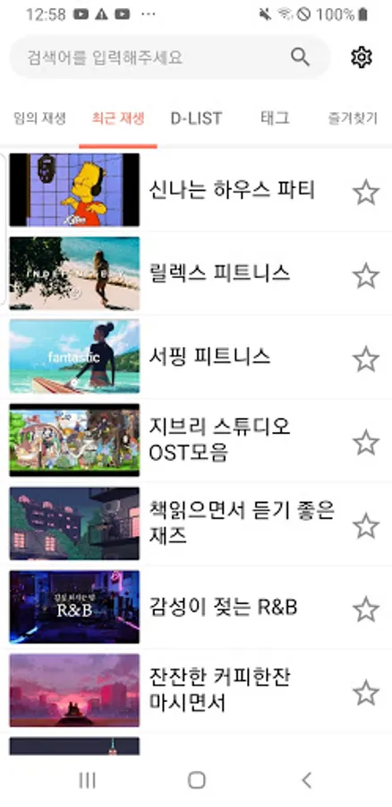 원하는 무드, 듣고 싶은 음악의 장르를 검색해서 들을 수 있습니다.