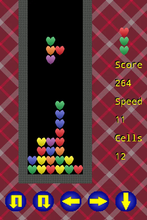 Fast action puzzle game inspired by classic puzzle games. Three different game modes available for play: vanilla mode, side-scrolling play field mode, and new shapes mode. A variety of different background and shape looks to choose from. Play this game and have a blast.
