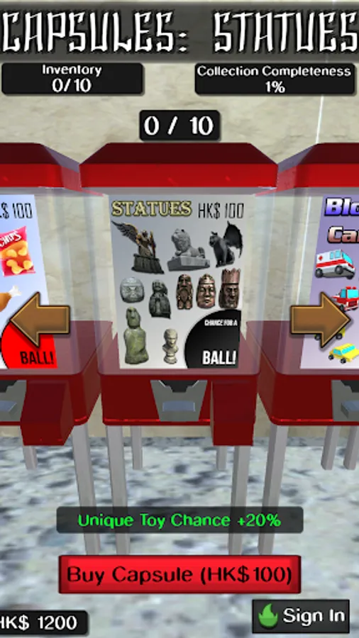 Earn Hong Kong dollars and collect capsule toys and pachinko balls.