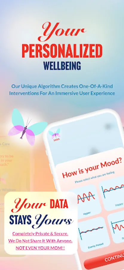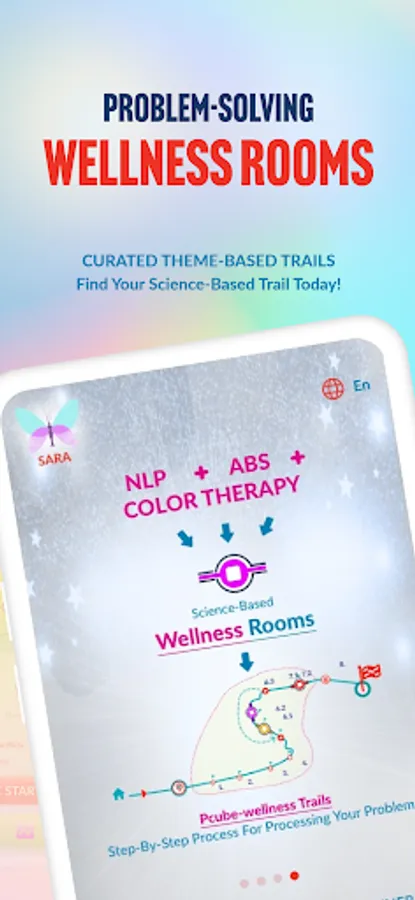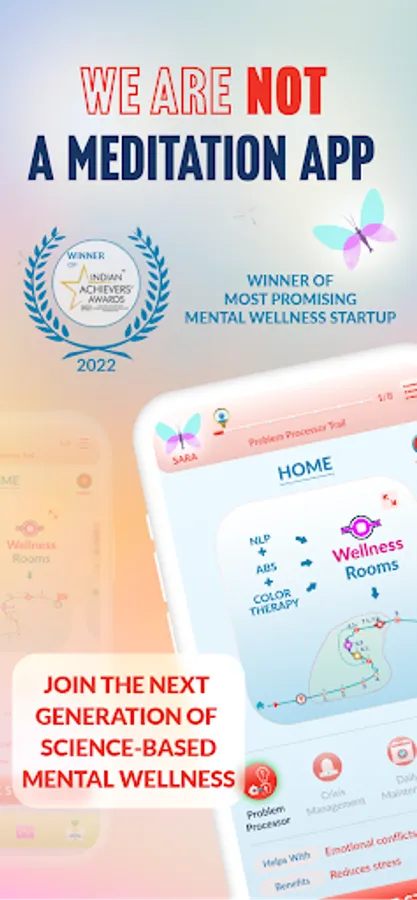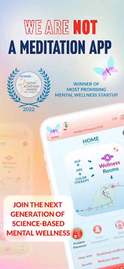 mental wellness, personal problem, mood tracking, guided meditations, self-help resources, panic support, award, scientific, NLP, ABS, Color Therapy, community, earn