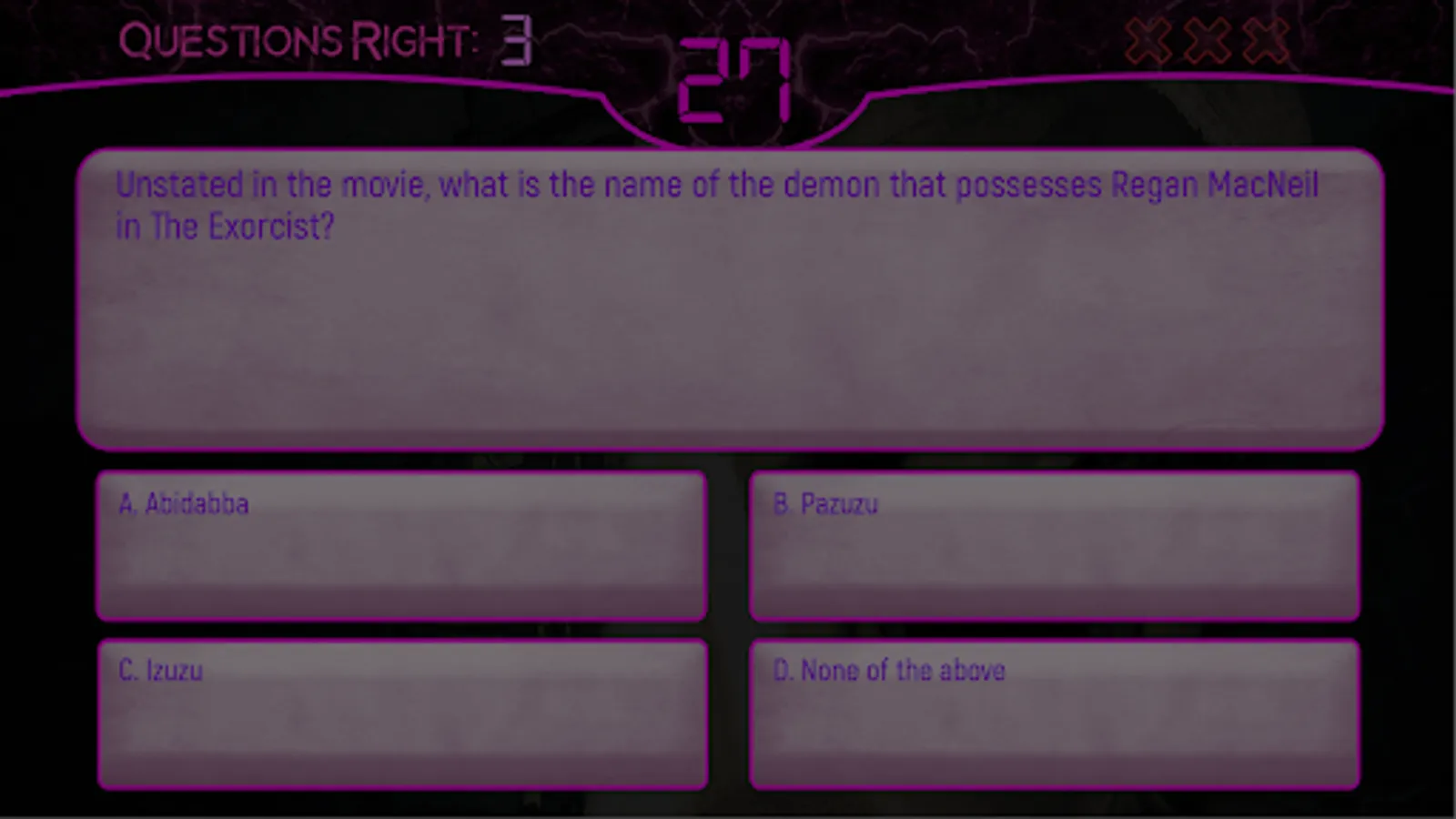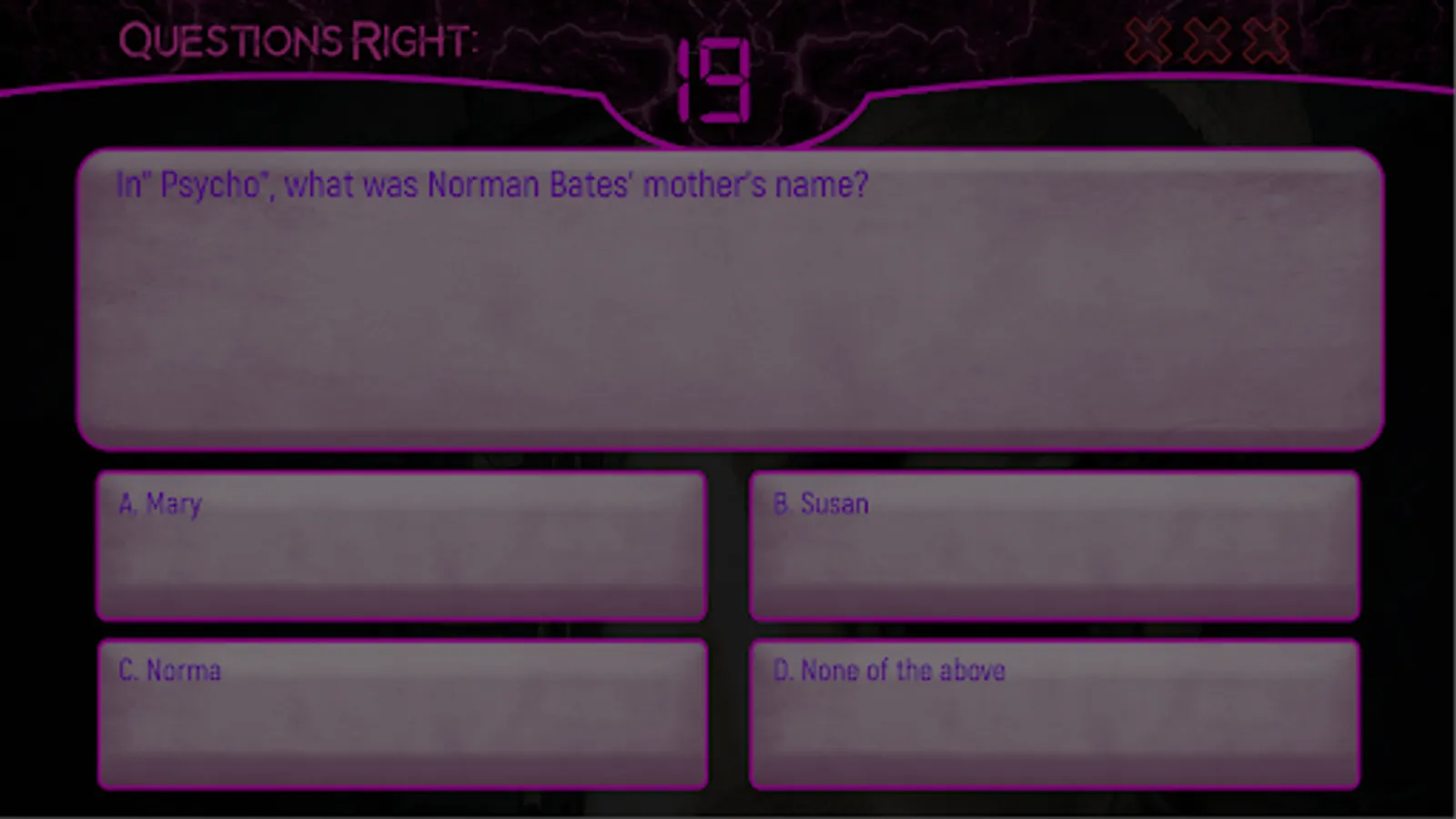 3 X's and your out!!!! Answer 100 Randomly generated questions and be rewarded with famous movies quotes at 10, 25, 50, 75, and 100 RIGHT Questions!