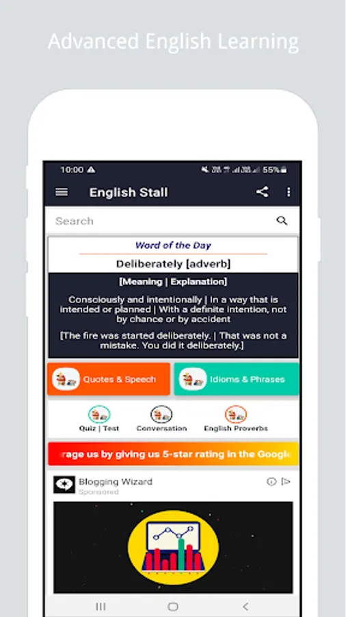 It is very essential to increase the stock of vocabulary for learning English fast. Vocabulary is the heart and soul of a language. The "English Stall" app will help you to learn the essential vocabulary daily.