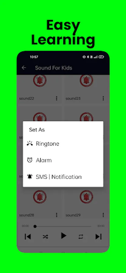 The sounds contain extra added features like kids can download or set ringtone for any Android device.