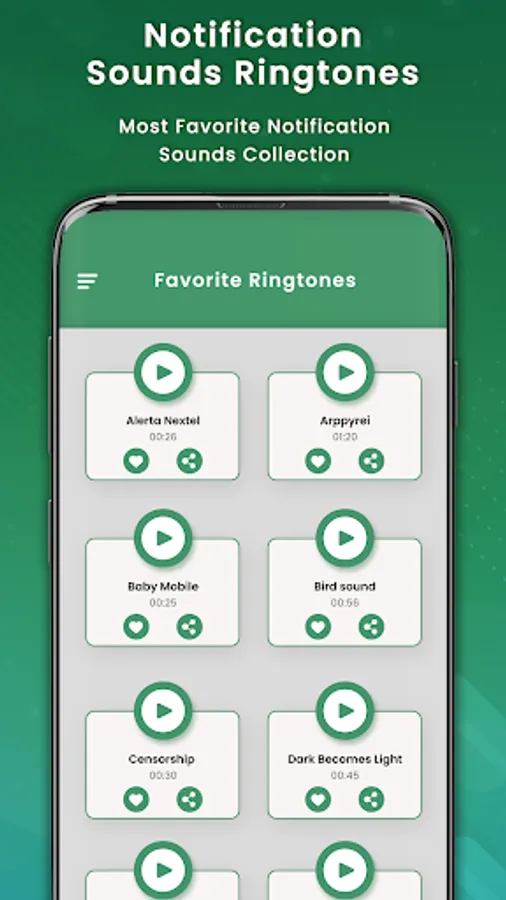 - You can set them as your ringtone, message, alarm, notifications and also share Sound with any platform.