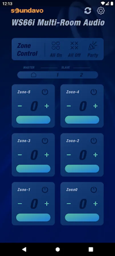 - New Master, Slave 1 and Slave 2 amplifer devices selection menu at the top of the main screen.