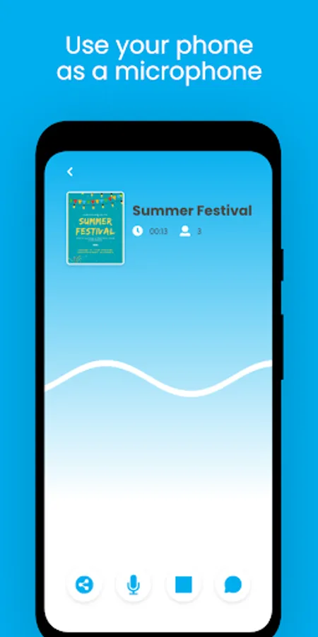 Use your phone as a microphone and the phone's of your audience as speakers. Broadcast to nearby phones.