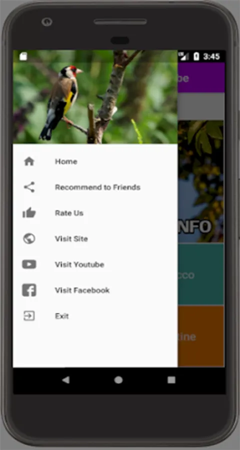 The application contains the most beautiful sounds of birds and birds, goldfinch