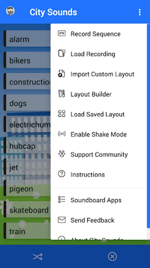 City Sounds is an amazing and free Soundboard app that lets you feel like you are in control of a city! Play multiple city themed sound clips and effects, like construction zone, car alarm, biker gang, dogs barking, cars honking, jets flying, police sirens chasing, and pigeons... pigeoning!