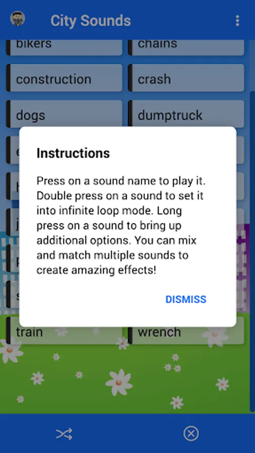 There are also some cool and exciting features in City Sounds. You can play multiple sound effects at once, so you can mix and match and make the ultimate city sound mixture. You can set the sounds into infinite loop mode to keep the sound alive. And you can also set the effects as your ring tone on select phone devices! I mean, who DOESN'T want a ringtone that sounds like a dump truck?!?