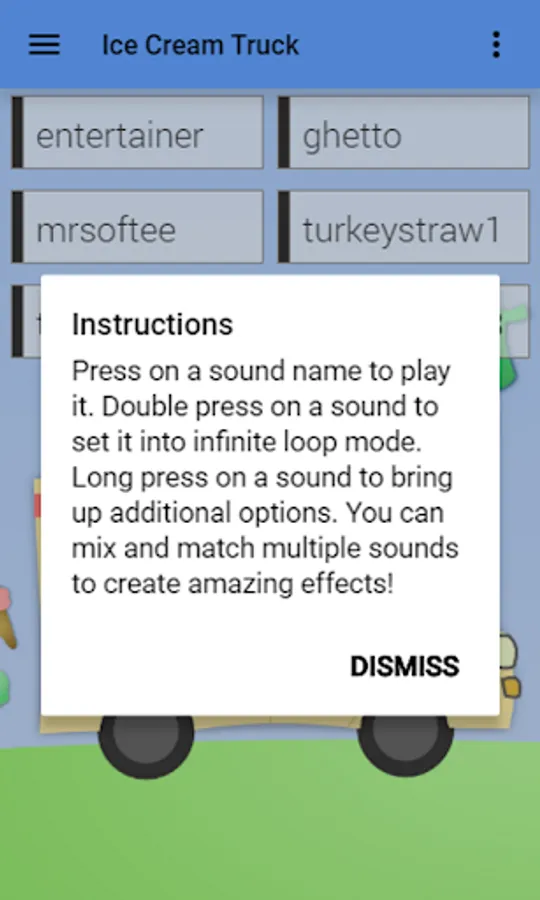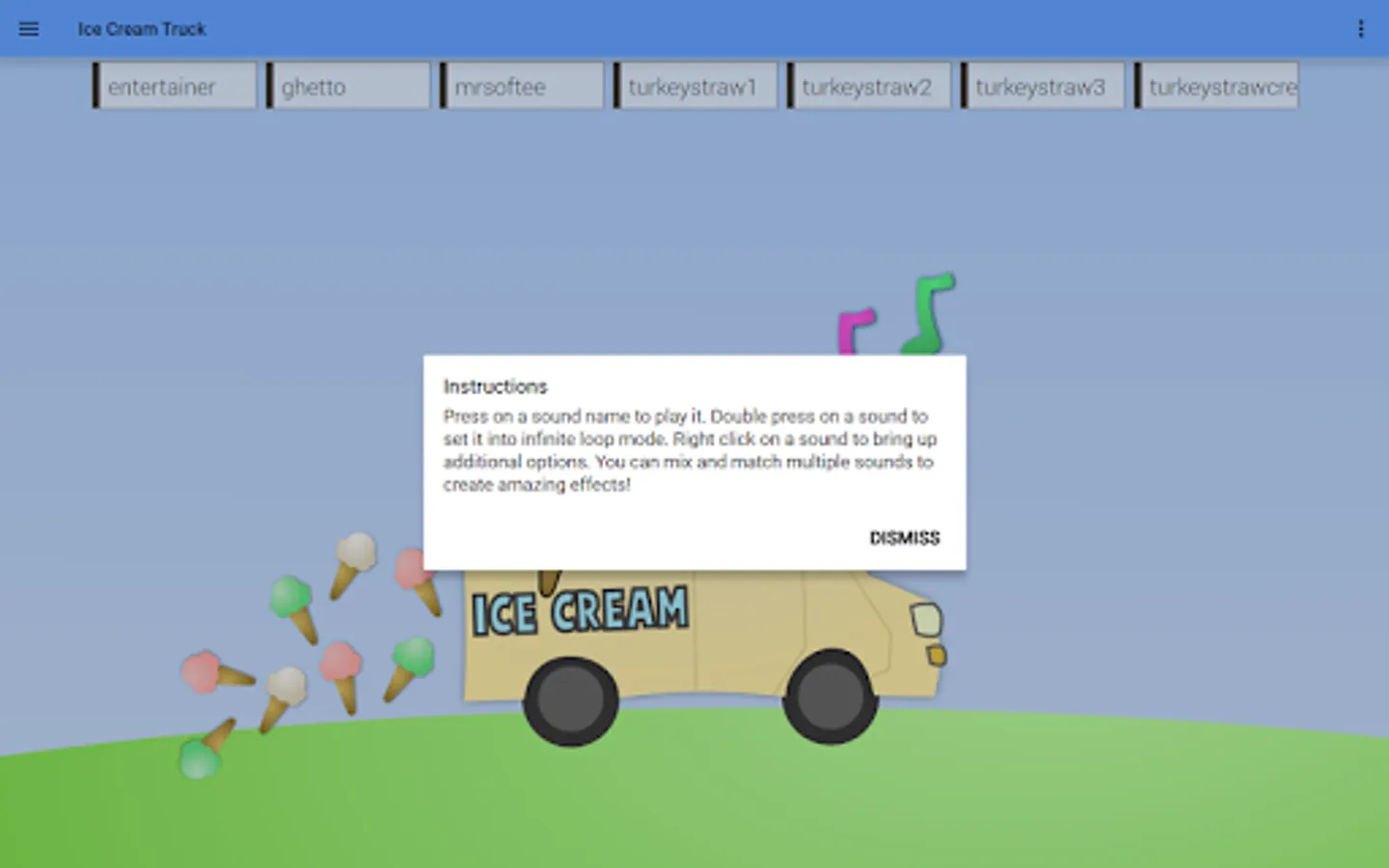 Relive your childhood or the glory days of summer with this classic soundboard featuring old school Ice Cream Truck tunes! Hook the app up to the sound system in your car, and your neighbors might even think that YOU are the ice cream truck!