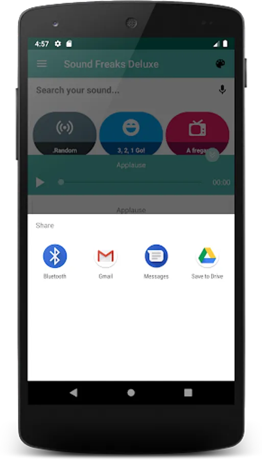 ✔ You can share the sounds in all apps that allow sharing. (Bluetooh, Wifi, NFC, Social Networks..)