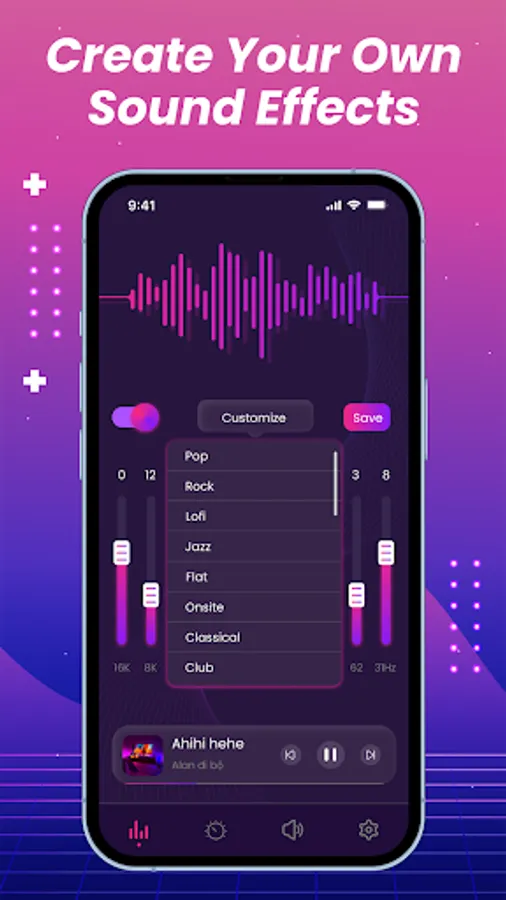 - 10-bands equalizer music player with over 20 presets: Normal, Classic, Dance, Flat, Folk, Heavy Metal, Hip Hop, Jazz, Pop, Rock, etc…