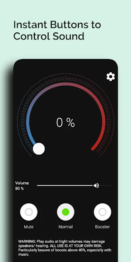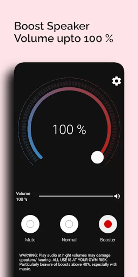Playing audio at high volume may damage your hearing or broke your speakers. We advise you to boost the volume step by step, to get the appropriate volume. By installing this application you agree that you will not hold its developer responsible for any damage to hardware or hearing, and you are using it at your own risk.