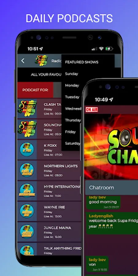 The Official SoundChat App features ton of exclusive interviews with your favorite artiste, On-Demand access to Live Shows, podcasts, the livest chatroom, and a community that supports the sound system culture.