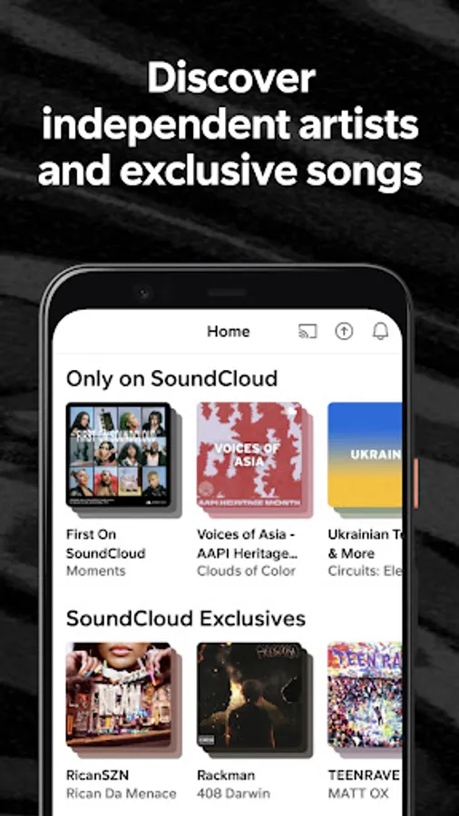 Be the first to find new music. Discover trending artists, play songs and share your favorite playlists.