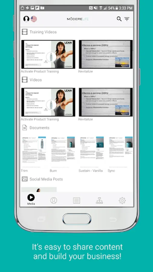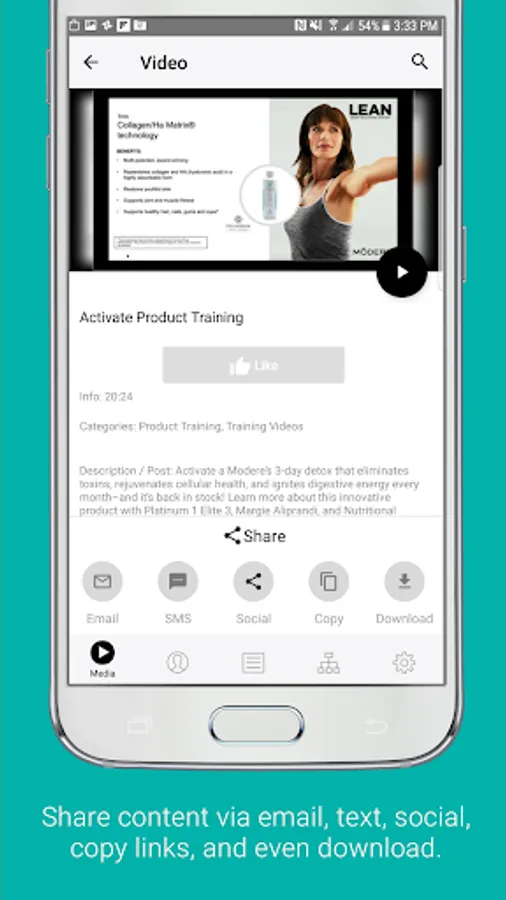 Media: It has never been easier to share information about your products and opportunity via SMS text, email, or social media. Simply choose tools specifically designed to promote your business and share them with a contact. You'll receive a notification when contacts view a tool so you know exactly when to follow up! No data connection? No problem! Simply down-load content in the app beforehand for offline playback.