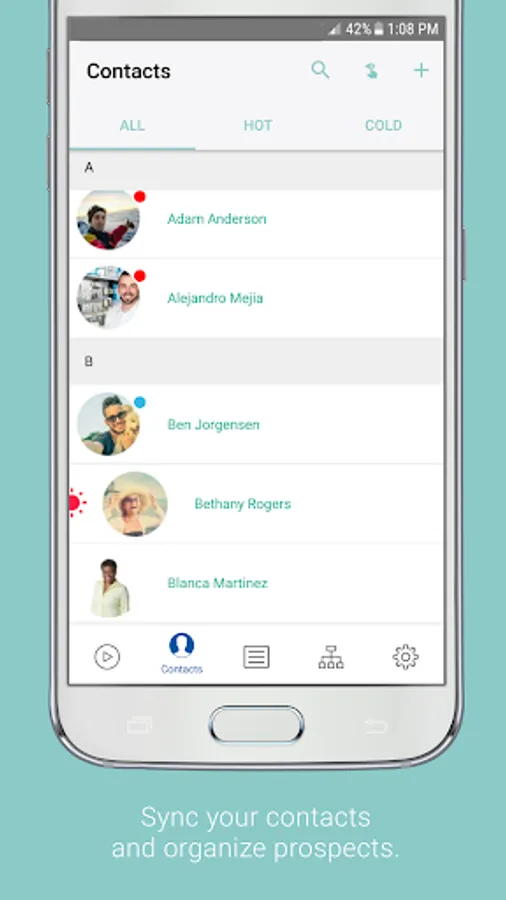 People: Manage contacts easily and swipe to categorize them by interest level. You can make connections, add notes, or check out the Contact Feed to see the Media you've shared and if your contacts have viewed it.