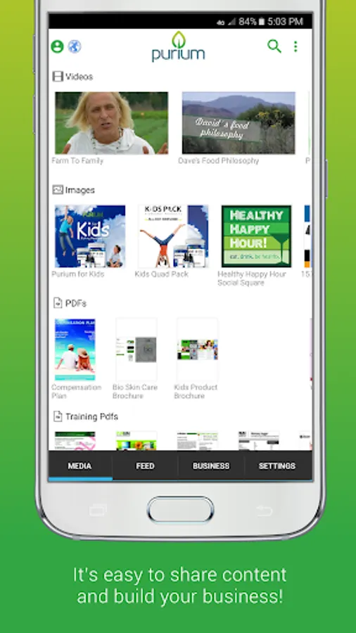 SHARE! The Purium App makes it extremely easy to text, email or private message a prospect information about the Purium products and opportunity! Choose from a vast selection of branded content that promotes your business. You and your prospects will appreciate the automatically created links that will lead them to the content you shared, and to their next steps.