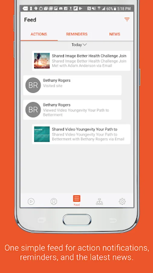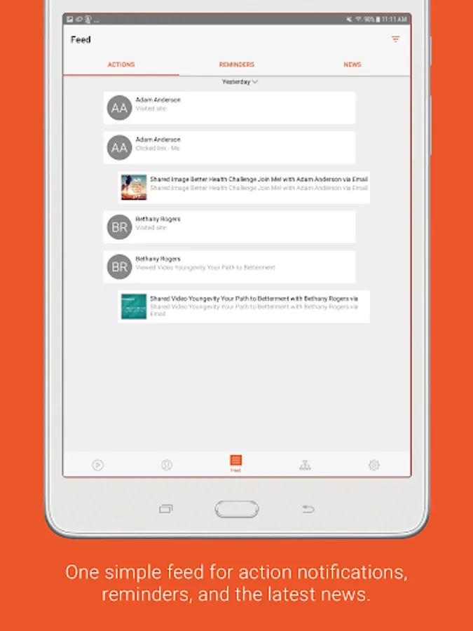 Feed: Keep track of everything you’ve shared and see what your contacts have viewed with notifications. You can even swipe notifications to mark them as a Reminder. News also brings all of the latest announcements and social posts from corporate straight to you--in one convenient place!