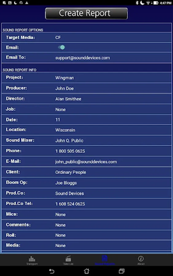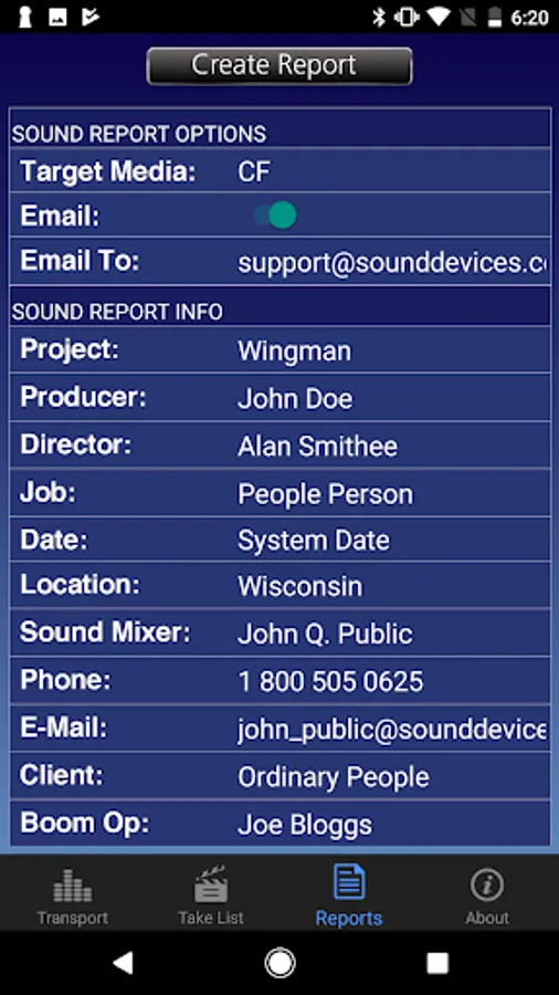 Additionally on the 6-Series, Circle a take or designate False takes with the touch of a fingertip. Create sound reports quickly, and instantly email them directly from your Android smartphone or tablet.