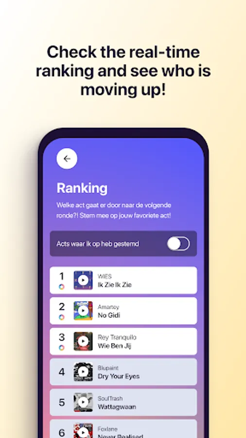 This year we work together with de Grote Prijs van Nederland to facilitate the entire selection and voting process. All acts will be provided with real-time feedback and insights into their audition.