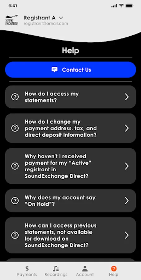 • Have questions about a topic related to your account, payments, or something more general? Reach out to us via the SoundExchange app!