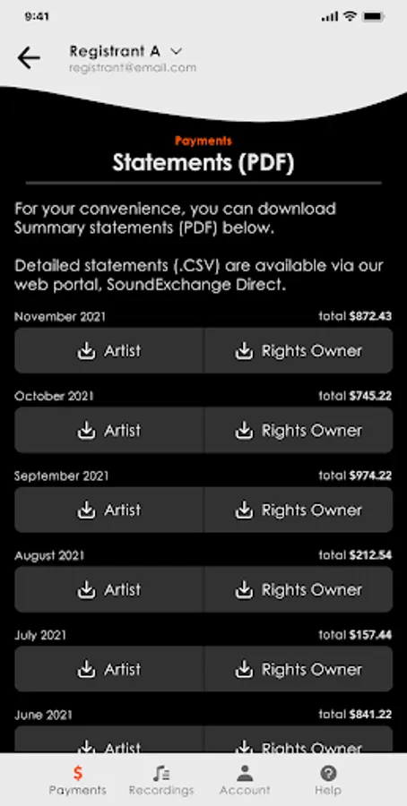 If you are a user of SXDirect you can log into the SoundExchange app and view your details related to the following areas: