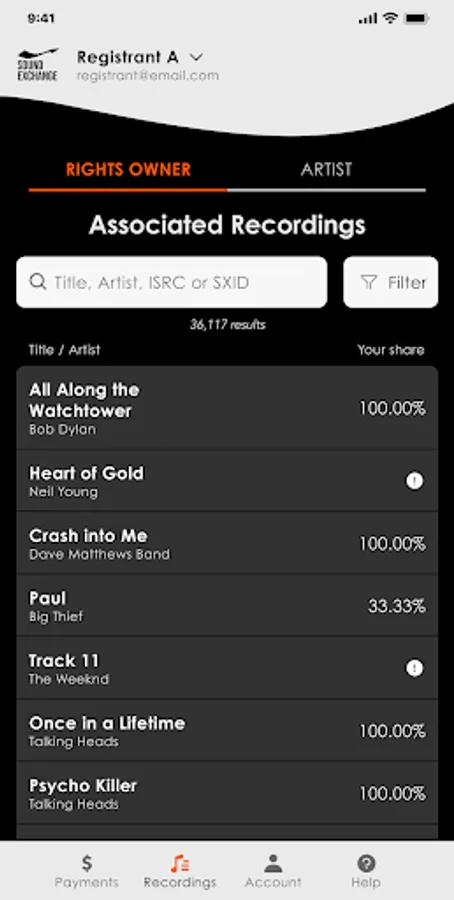 If you have royalty items associated to your account as an Artist or a Rights Owner, you’ll now have the ability to view all associated recordings linked to your account