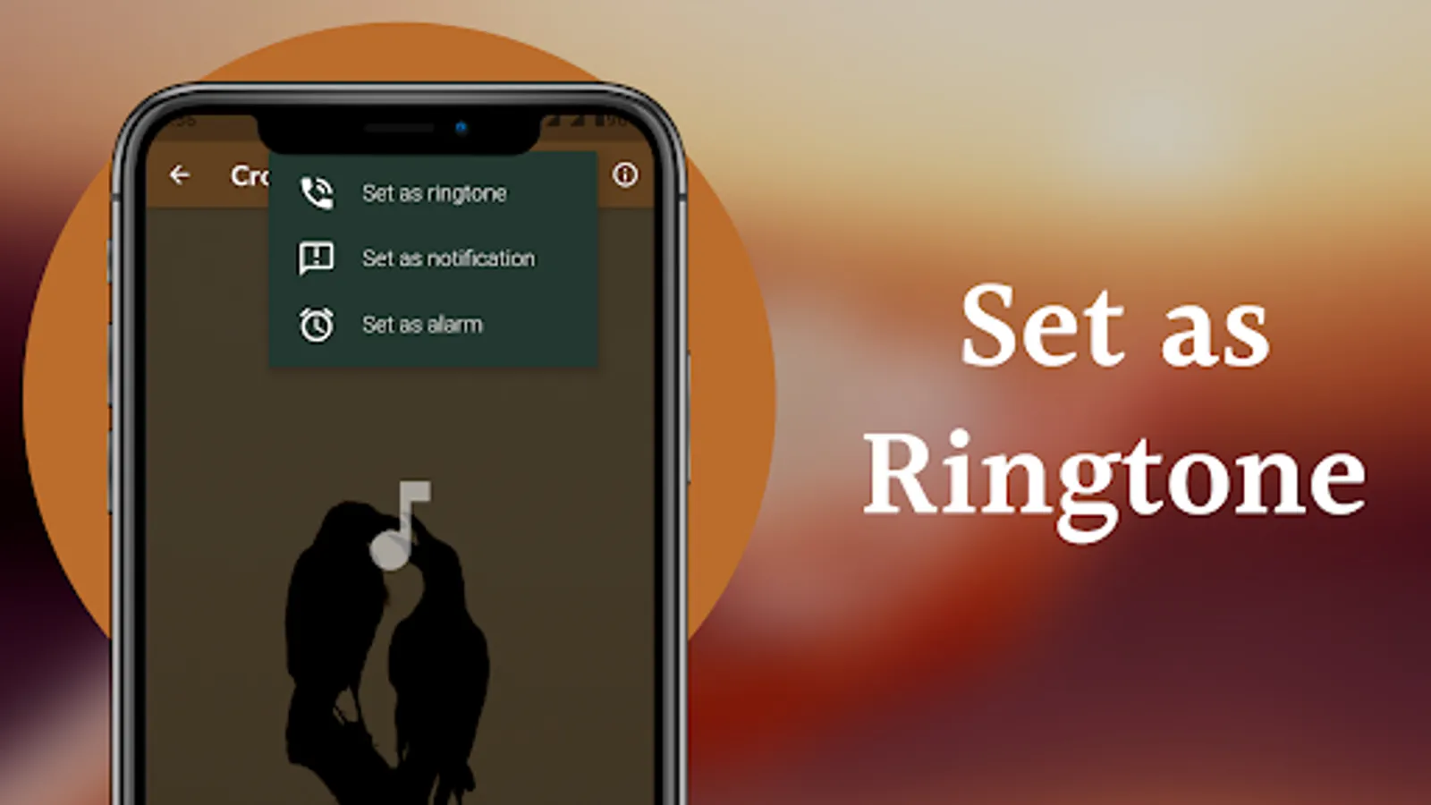 ● Set any Sound as Ringtone, Alarm tone, Notification tone.