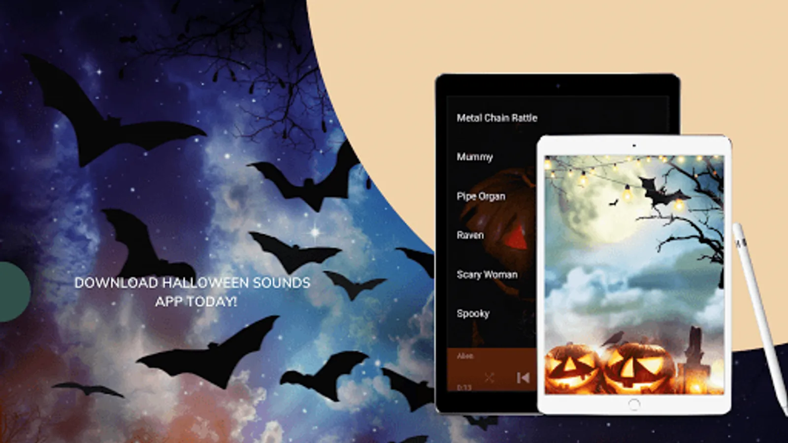 Halloween Sounds application featuring Halloween themed and other scary sound effects. Tap on a sound to play or long-press for more options like set as ringtone. Download Halloween Sounds app NOW and prepare yourself for some serious Halloween atmosphere.