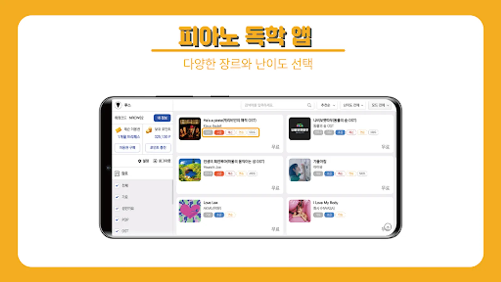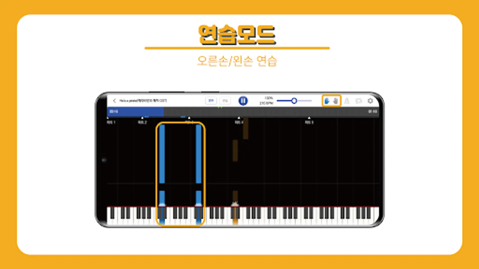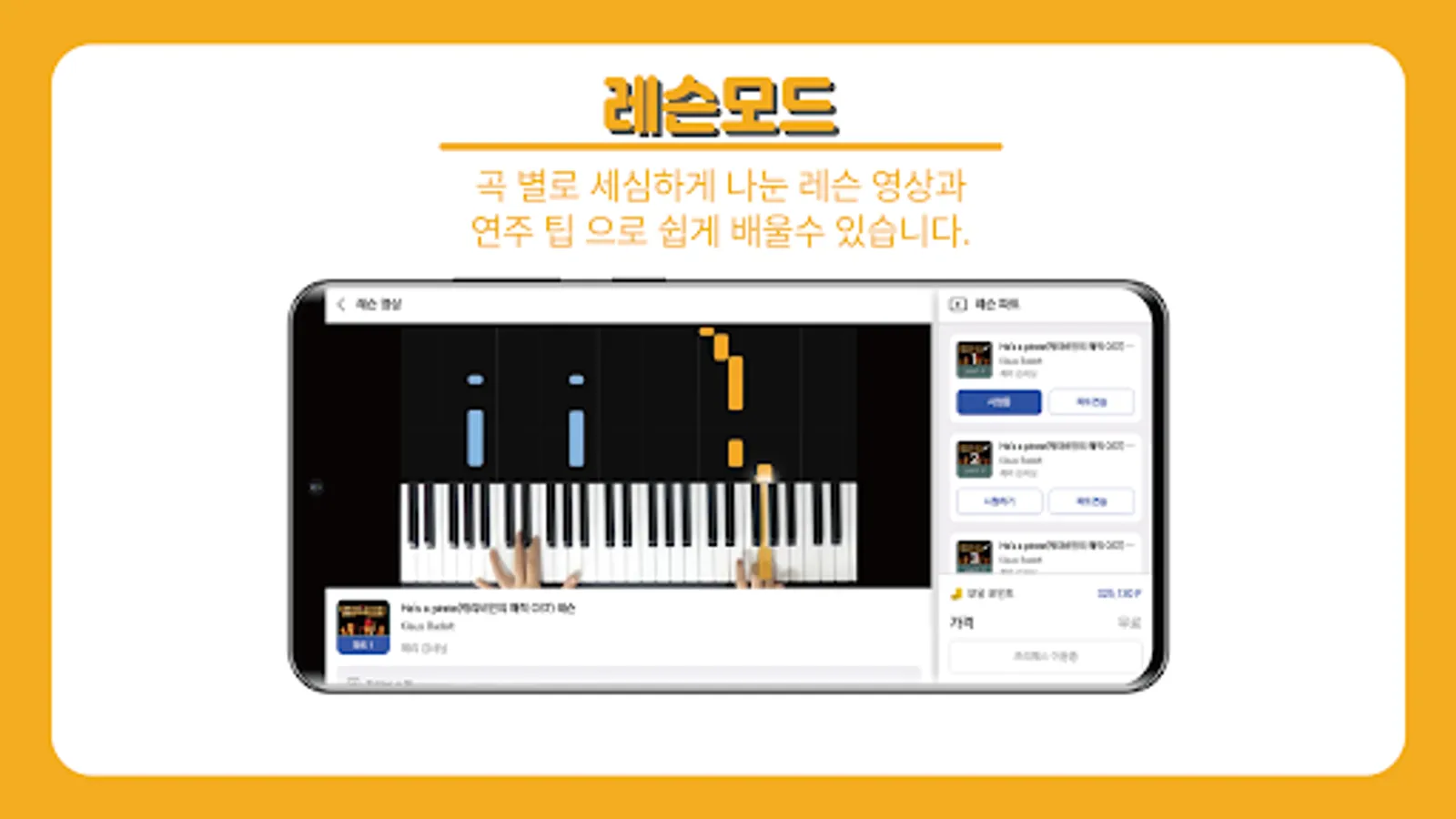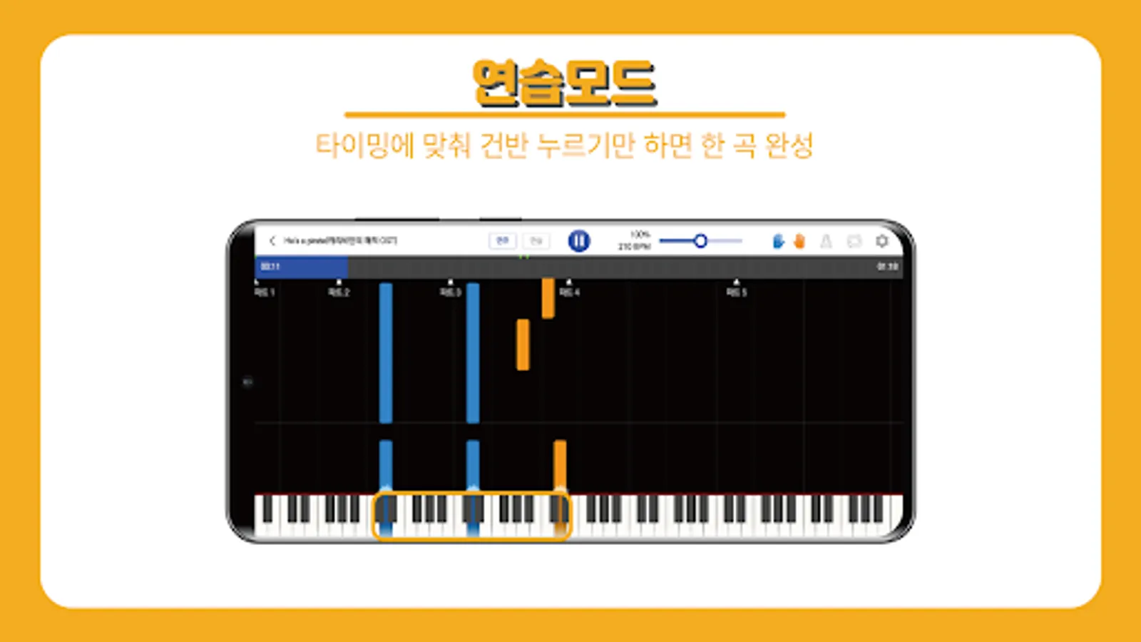 Even if you don't see the score, okay!! The visualized score provided by the piano class shows both the part to be played and the length of the beat to be pressed, so even piano beginners who cannot see the score can play it using lesson mode and practice mode.