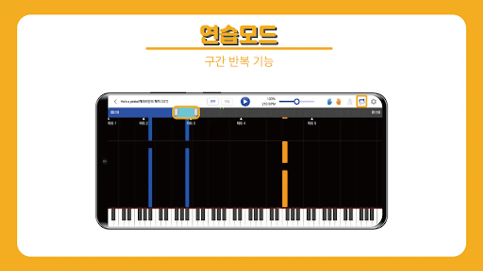 First, listen to a one-tempo song, learn the melody, and practice slowly while adjusting the speed according to your level. So you can't learn a song just by playing. Set a repetition section and memorize as little as you can play!!