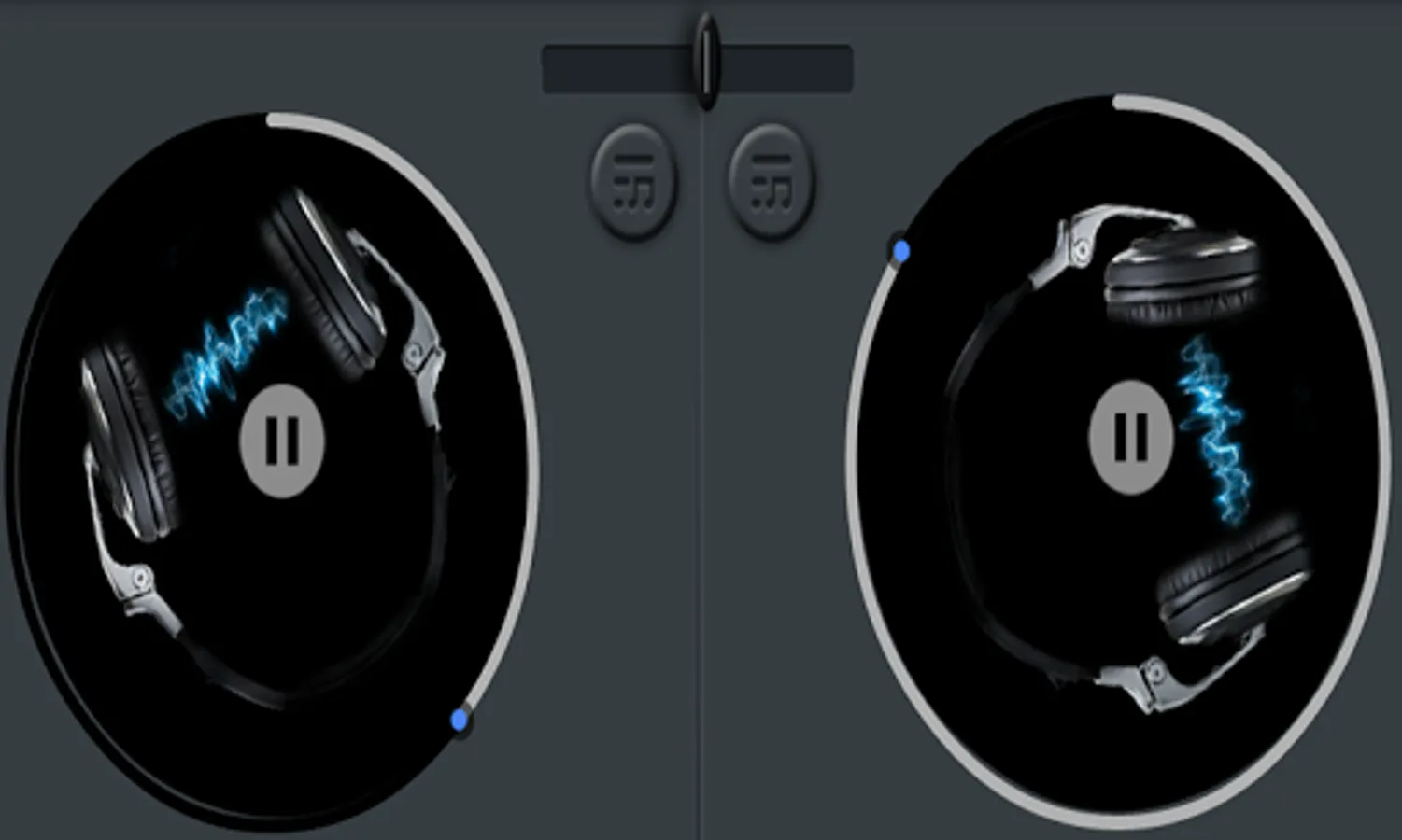 By this app you can play two songs at a time. And mix these songs by performing bellow options :
