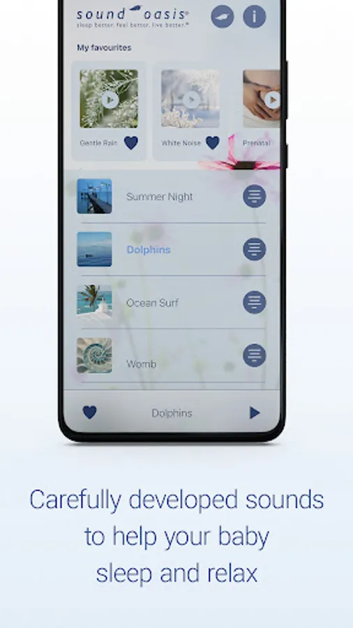Sound Oasis® is the world leader in sound therapy systems. These professionally recorded and edited soundscapes have been carefully developed to help your baby sleep and relax.