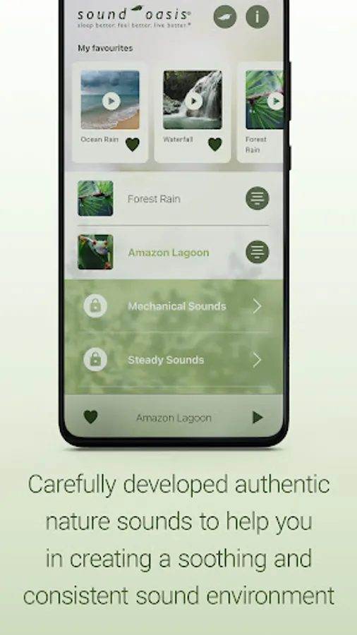 The sounds in this app can be an effective tool to help you relax and fall asleep using sound therapy. Nature sounds create a familiar, highly effective way to relax, block out unwanted sounds and create a soothing sound environment. These sound tracks are carefully designed so that you experience our world famous sounds for the best sleep experience possible.