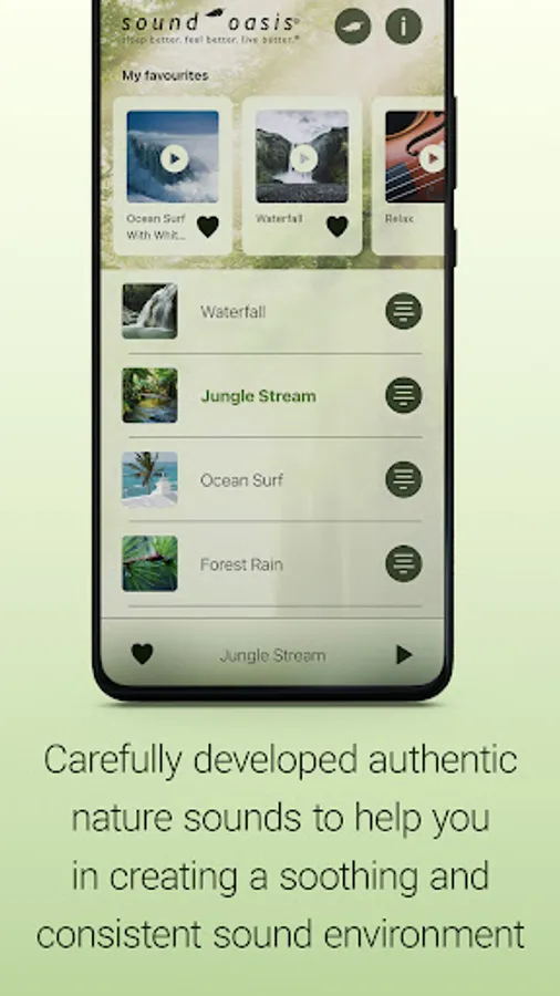 This app can be an effective tool to help you relax and fall asleep using authentic nature sounds as a therapeutic masking tool. Nature sounds create a familiar, highly effective way to relax, block out unwanted noises and create a soothing and consistent sound environment. These Nature Sound tracks are carefully designed so that you experience our world famous sounds for the best sleep experience possible.