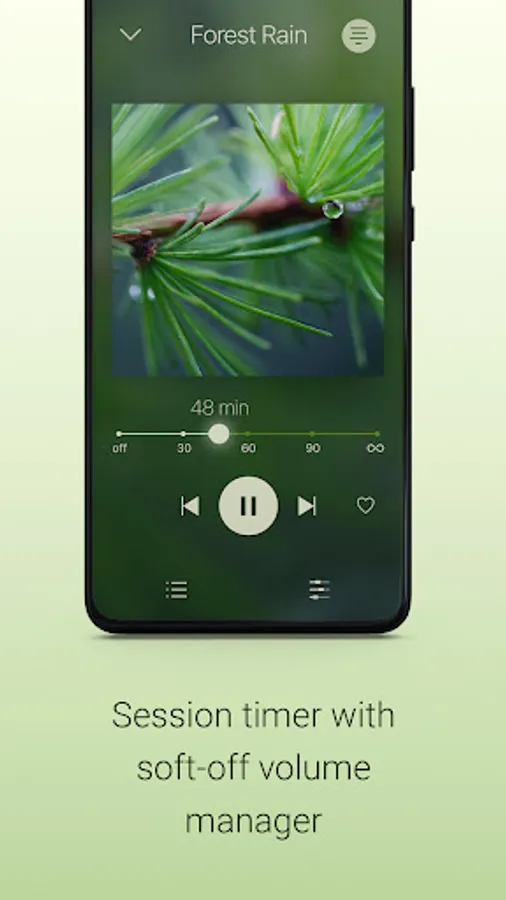 This app includes 27 sounds, a unique 12-band equalizer for customizing each sound to your personal preference, a fully functional playback timer and soft-off volume management.