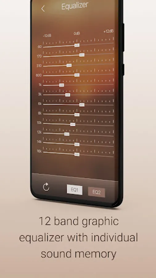 - Control precise frequency levels of sound playback with exclusive 12 band graphic equalizer.