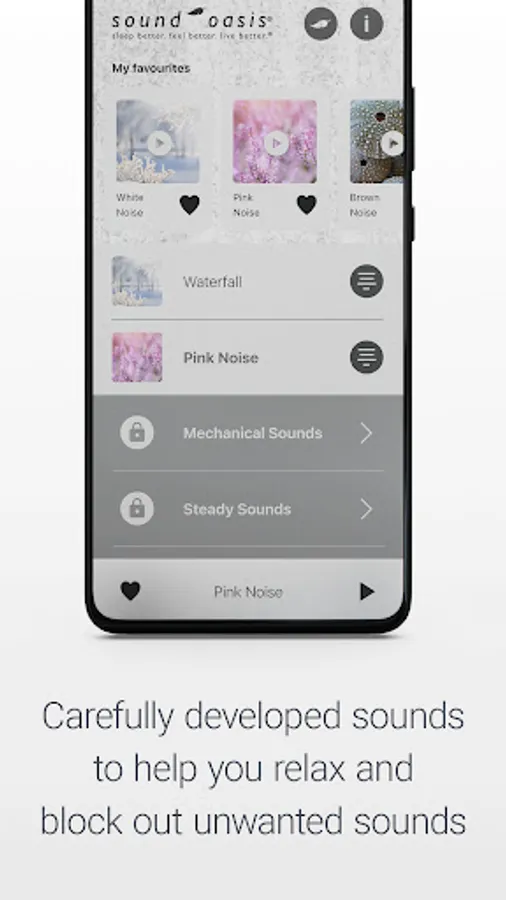 This app provides a sampling of our professionally recorded sounds, a fully functional playback timer and soft-off volume management.