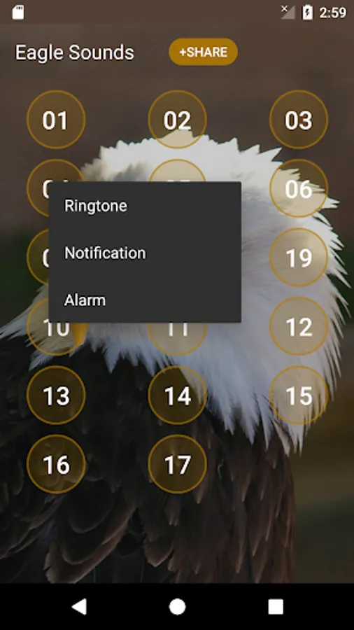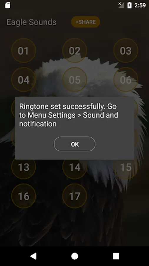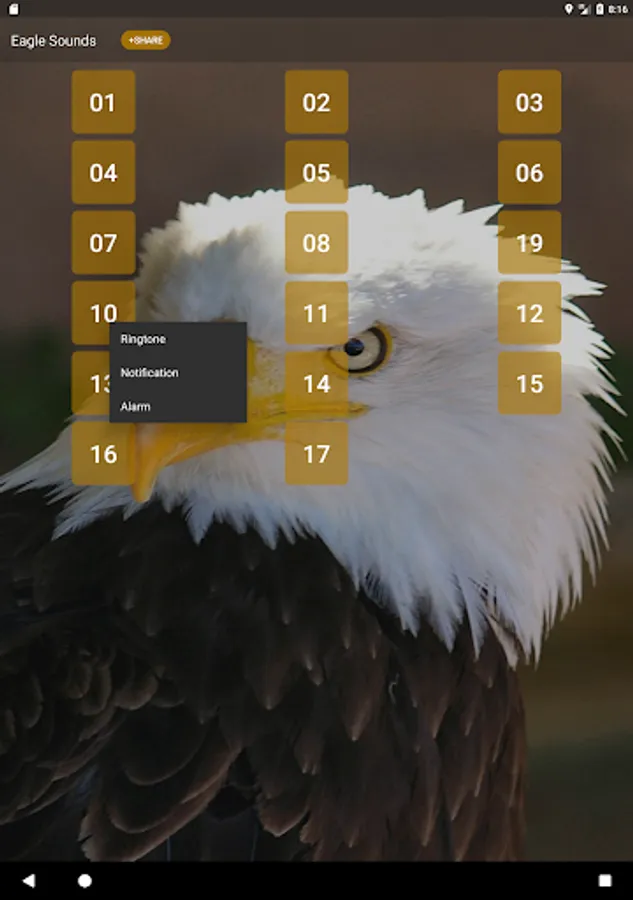 the application also incorporates a rare eagle over 15 sounds can be set as ringtones. By pressing the button on the audio player. It is a set menu as needed.