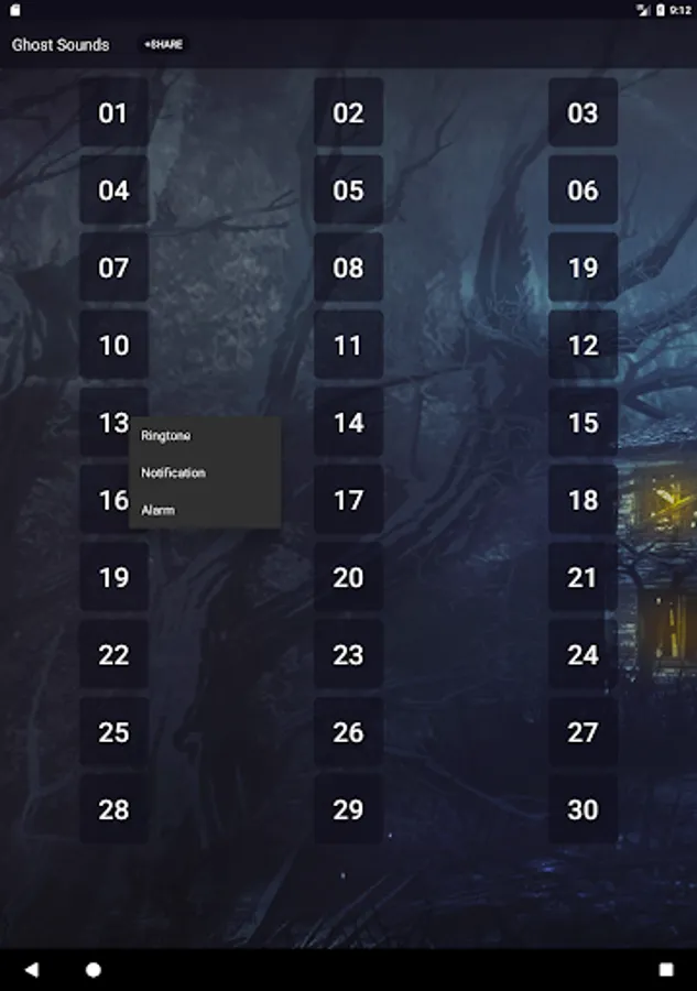 Applications with a ghost sound (not a real ghost) and sound of his voice can be set to 30 ringtones. By holding that a ghost icon as required.