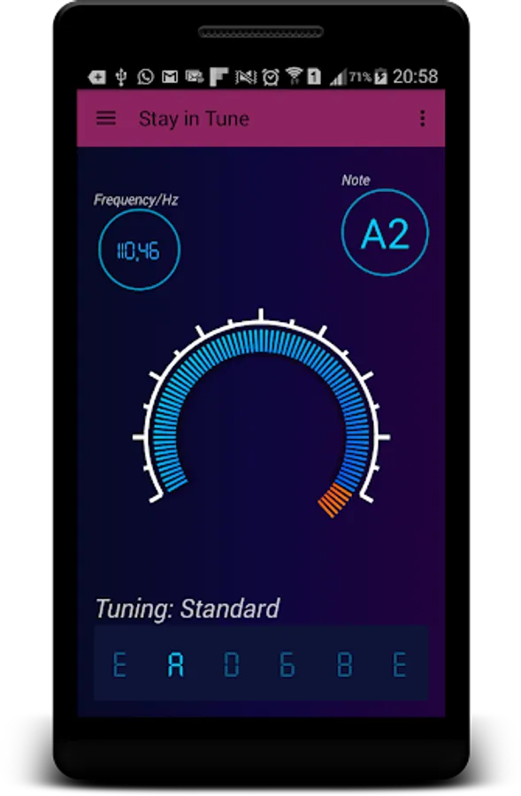 For both acoustic and eletric guitar tuning, it detects the pitch value and monitors the frequency in real time.