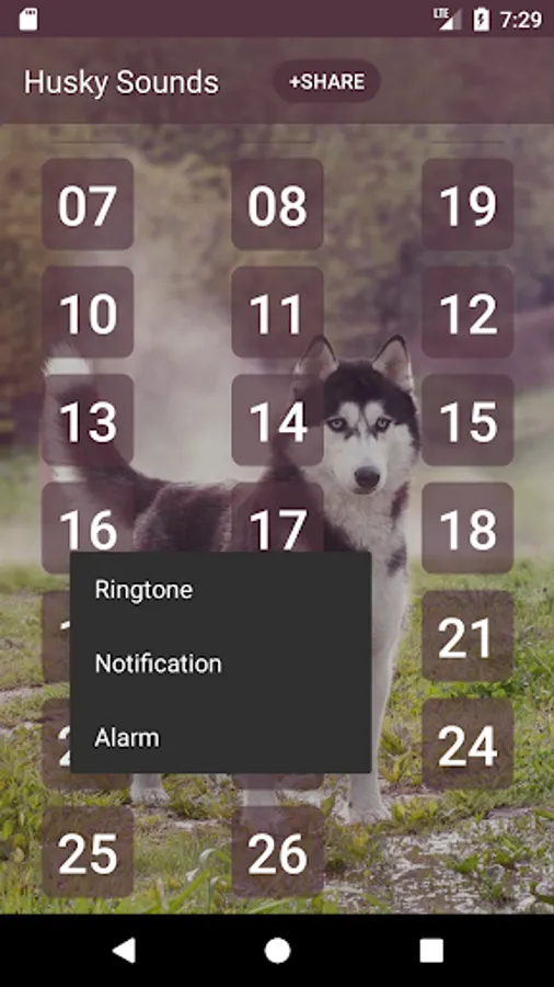 Siberian husky sound more than 20 sound can be set to beep. Ringtones