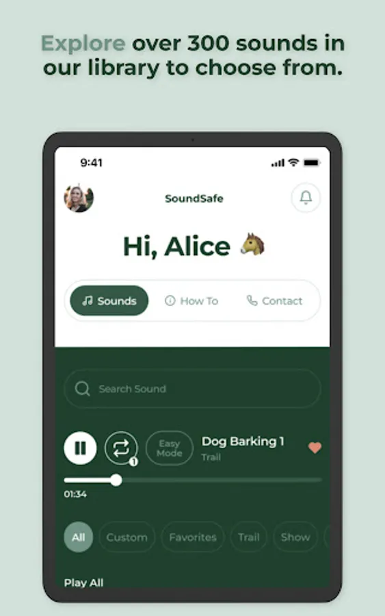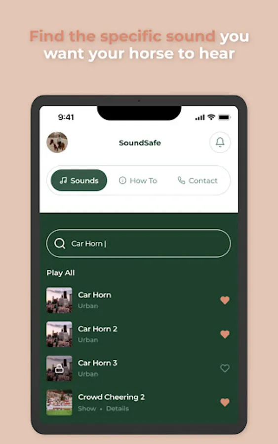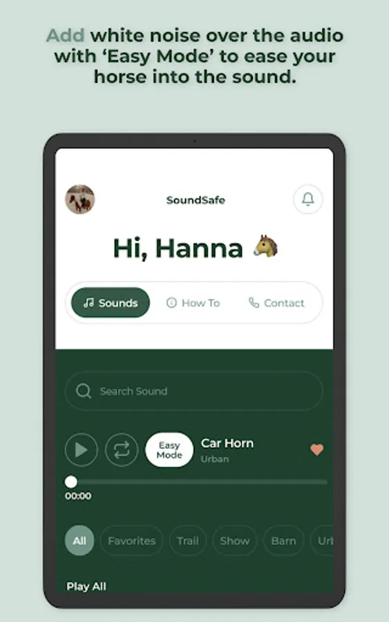 SoundSafe is an innovative noise desensitization app, made by horse owners for horse owners. Featuring over 300 unique sounds plus the ability for you to record unlimited custom sounds, SoundSafe can help prepare your horse for almost any situation, from fireworks to fly spray. Special features such as “easy mode,” favorited sounds, multiple sound categories, and more, make it easy for you to find just what you need to help your horse become safe, confident, and reliable with whatever they encounter.